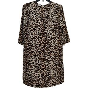 Equipment Aubrey Leopard Print 100% Silk Shift Dress Size Small Pockets Keyhole
