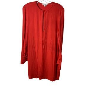 Red long-sleeve tunic dress with a keyhole neckline and loose fit