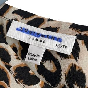 Gorgeous leopard print dress by Equipment from Revolve. Size XS. 3/4 sleeves and two patch pockets on the bottom front. Size XS and in great preowned condition; no visible flaws. Line through brand tag to prevent return.