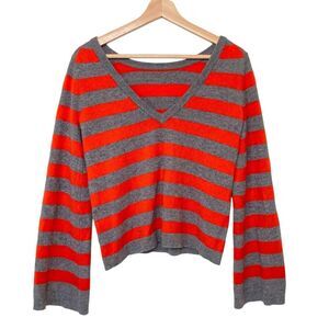 Equipment Baxley Sweater in Grey & Orange Striped Cashmere Size M Flared Sleeve