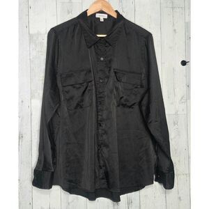 Equipment Black Classic Satin Button Down Blouse Closet Staple Sz. XL