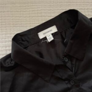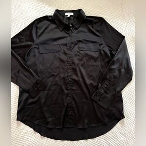 Women’s size large. Like new condition, no flaws. Black in color. Full button closure with a collar. Double breast pockets. A slim, relaxed fit. Retail $250