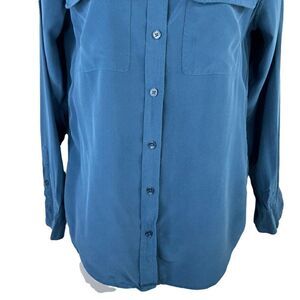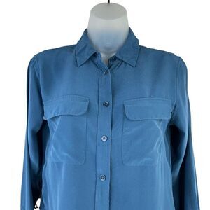 Equipment Blue Silk Button Down Shirt Blouse XS Long Sleeve Front Pockets