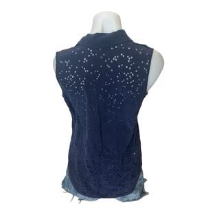 Equipment Blue Silk Star Sleeveless Button Down Shirt XS Celestial Designer $195