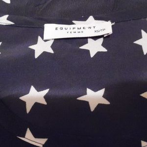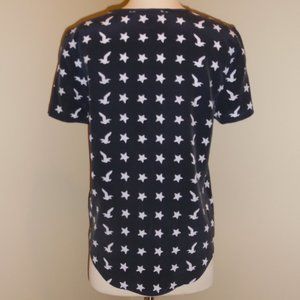 Equipment Blue Stars Birds Eagle Riley Silk T-shirt Tee Blouse XS
