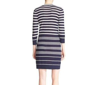 Equipment Cashmere Silk Striped Knit Sweater Dress Blue Short Sleeve Large
