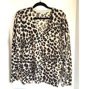 Equipment Cashmere Sweater Womens Medium White Leopard Print Oversized V-Neck
