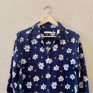 Equipment Dress Button Silk Floral Long Sleeves Casual Cottagecore Blue Large