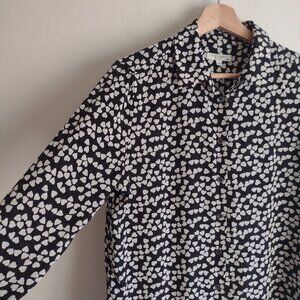 Equipment Essential Silk Top M Tossed Heart Print Black White Button Blouse