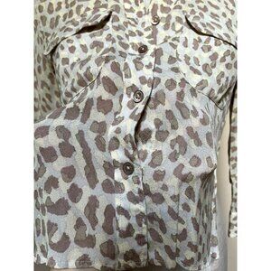 Equipment Femme 100% Silk Beige Leopard Print Semi-Sheer Cropped Button Down XS