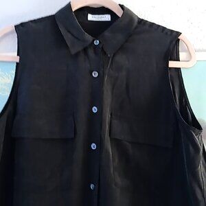 Equipment Femme 100% Silk Black Button Up Sleeveless Blouse Size Small