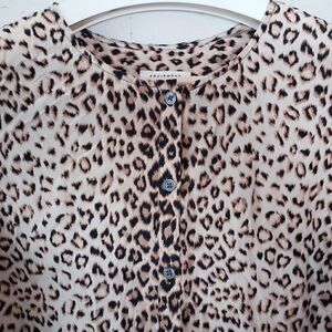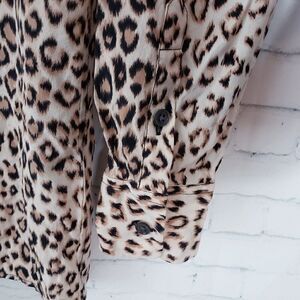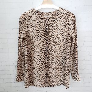 Equipment Femme 100% Silk Blouse XS Leopard Animal Print Button Up Collarless