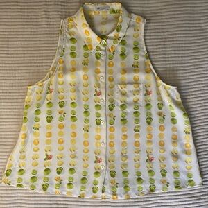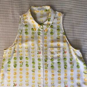 Equipment Femme 100% Silk Button Down Tank Dickey Citrus Lemons Limes Roses L