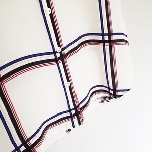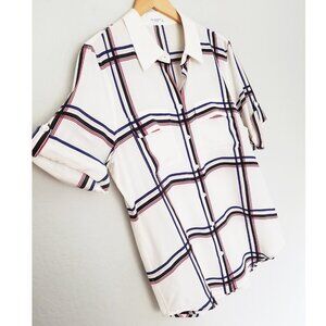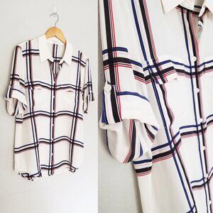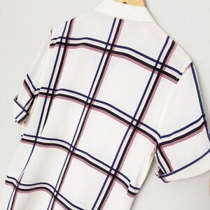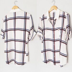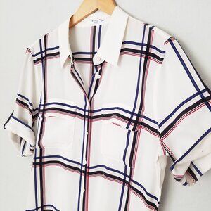 Equipment Femme 100% Silk Short Sleeve Silk Engineered Large Marais Plaid Shirt
