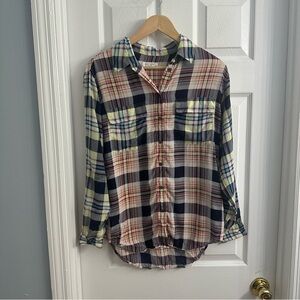 Equipment Femme Button Down Shirt 100% Silk Plaid Colorful Fall Size Small