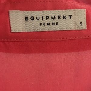 "Timeless and innovative, the [Equipment] collection exudes discreet sexiness in the form of luxe fabrics and unexpected details found in modern, androgynous silhouettes..." the Equipment woman is "strong, chic, elegant, adventurous, sexy, and above all, classic." Incredibly soft 100% silk blouse will not go out of style. Lightweight, pairs well with a blazer. The pictures against the rust colored wall are more true to the color of the shirt (not as pink as the white wall looks). Gently loved.