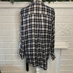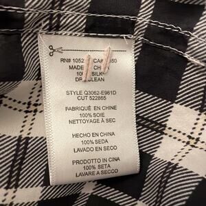Equipment Femme Essential Tie Neck Silk Shirt in Bright White Palo Santo Plaid L