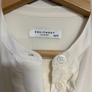Keywords: Equipment Femme silk blouse, ivory sleeveless top, ruffle blouse XS, workwear blouse, feminine office wear