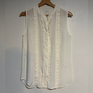 Equipment Femme Ivory Ruffle Trim Sleeveless Blouse XS