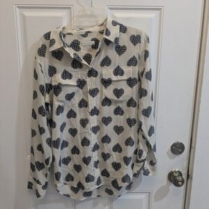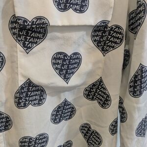 Chic button-down shirt with heart motifs. Ideal for casual wear. Add a playful touch to your style.