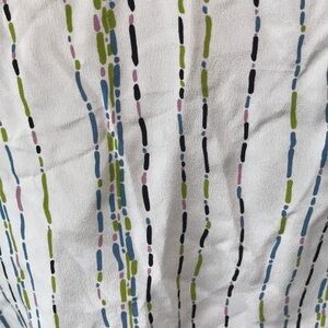 In good condtion. 100% Silk. White with multi color vertical dot stripes. Adjustable straps.