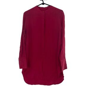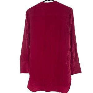 Equipment Femme Marche Collarless Long Sleeved Silk Magenta Blouse Size S Long