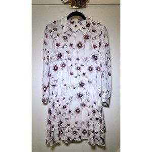 Equipment Femme Natalia Mini Dress Poppy White Silk Tiered Size Small Petite