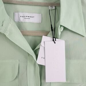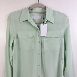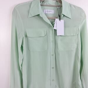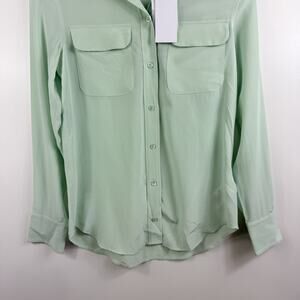 Equipment Femme New Mint Green 100% Silk Blouse XS Sheer Career Office Pockets