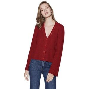 Equipment Femme Paz 100% Cashmere V Neck Ribbed Cardigan Sweater Red Small