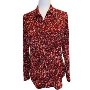 Equipment Femme Red Leopard Viscose Button Down Blouse Size Small