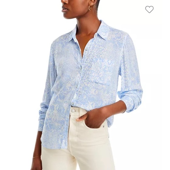 Equipment Femme Silk Snake Print Long Sleeve Button Down Blue White Medium