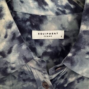 Equipment Femme White Blue Pattern Satin Button Down Shirt Women's Small