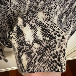 Equipment Femme Odine Women’s Snake Print Cashmere Silk Blend Crewneck Sweater Thin Knit Zipper Neckline Detail