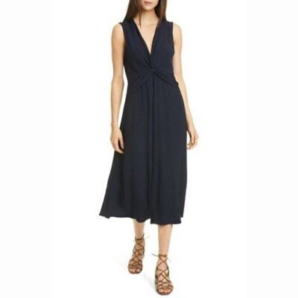 Equipment Femme Women's Navy Eclipse Sleeveless Faun Twisted Front Midi Dress Size 0 NWT