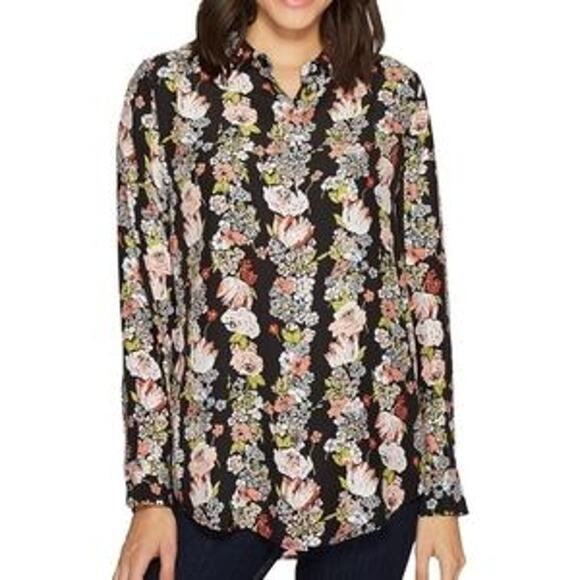 Equipment Femme Women's Size XS/TP Silk Black Floral Long Sleeve Button Up Shirt