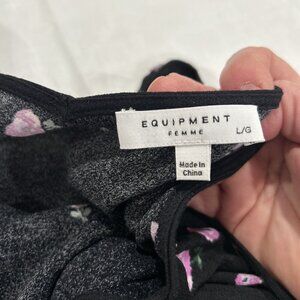 Equipment Femme Womens Slip Dress L Black Floral Print Maxi High Low Elegant