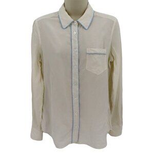 Equipment Femme Womens Small Ivory Blue Trim Collared Button Front Shirt Top