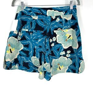 Equipment Lyra Short Saxony Blue Hawaiian Floral Silk Shorts Size 4 NWT