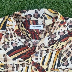 Equipment Men's Abstract Silk Vintage Shirt Brown Tan Medium