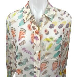 Equipment Multicolor Silk Satin Feather Long Sleeve Button Down Shirt Top Sz XS