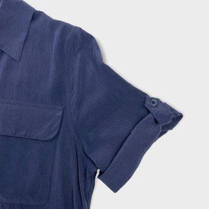 Equipment Navy Blue Silk Button Up Shirt Size XS