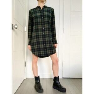 Equipment Plaid Long Sleeve Dress - Dark Green and Black