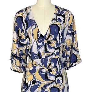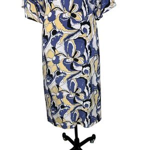 Equipment Rosita Blue Yellow Silk Floral Midi Dress | Size X L