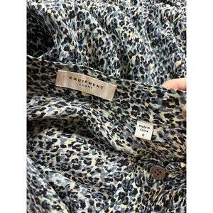 Equipment Shirt Dress Blue Animal Leopard Print 8 Silk Long Sleeve Drawstring