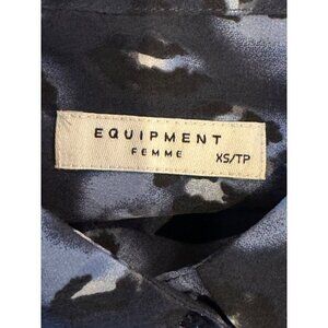 Equipment Shirt Women XS Blue Black Silk Leopard Print Collared Button Up Blouse