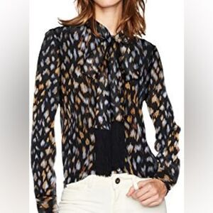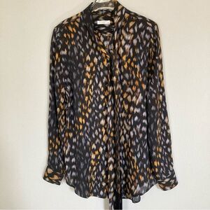 Equipment Silk Blouse Women Medium Essential Tie Neck Black Abstract Ikat Black