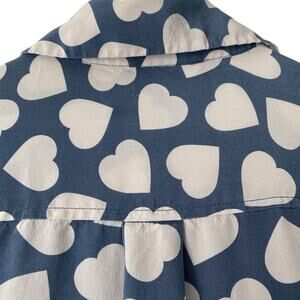 Equipment Silk Blue White Heart Print Button Down Blouse shirt size small