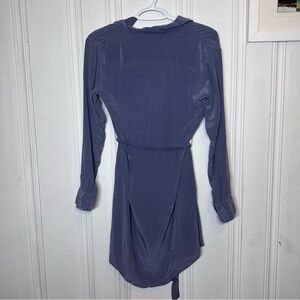 Equipment Silk Button Down Long Sleeve Blue Belt Dress XS