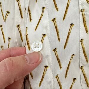 Equipment Silk Tan Brown Nail Print Button Down Shirt Womens s Whimsical Casual