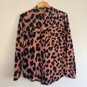 Equipment Slim Signature Leopard Print Blouse in Desert Sand Multi Silk Size:XS